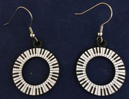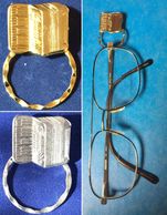 Electroplated SPEC piano accordion pin for eyeglasses. This attractive accordion pin has a 1" diameter loop for carrying one pair of eyeglasses.