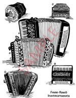Rubber stamp attached to a finished wooden block. Available choices of rubber stamps include Slovenian / Austrian button box, bayan / chromatic accordion, and Cajun accordion, and the phrase "I ♥ my accordion".