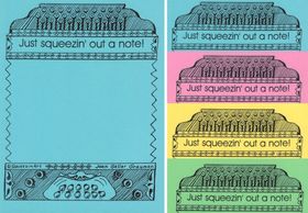 50-page Slovenian / Austrian button box note pad with the message, "Just squeezin' out a note!". ALL pads iincludes pages in 4 colors: pink, blue, yellow and green.