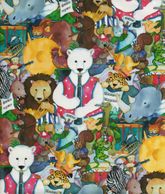 "Animal Musicians" colorful gift wrap, which includes an accordion-playing rabbit.